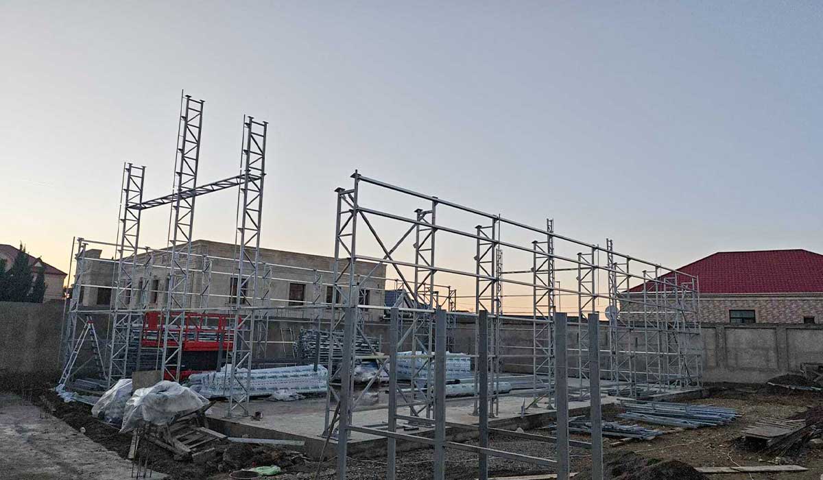 Double Corner Columns: 50 x 100 x 2,5 mm - Beams: 40 x 60 x 2,5 mm Modular bolted system | Center Columns: 100 x 50 x 2,5 mm - Height: 3 - 4 m