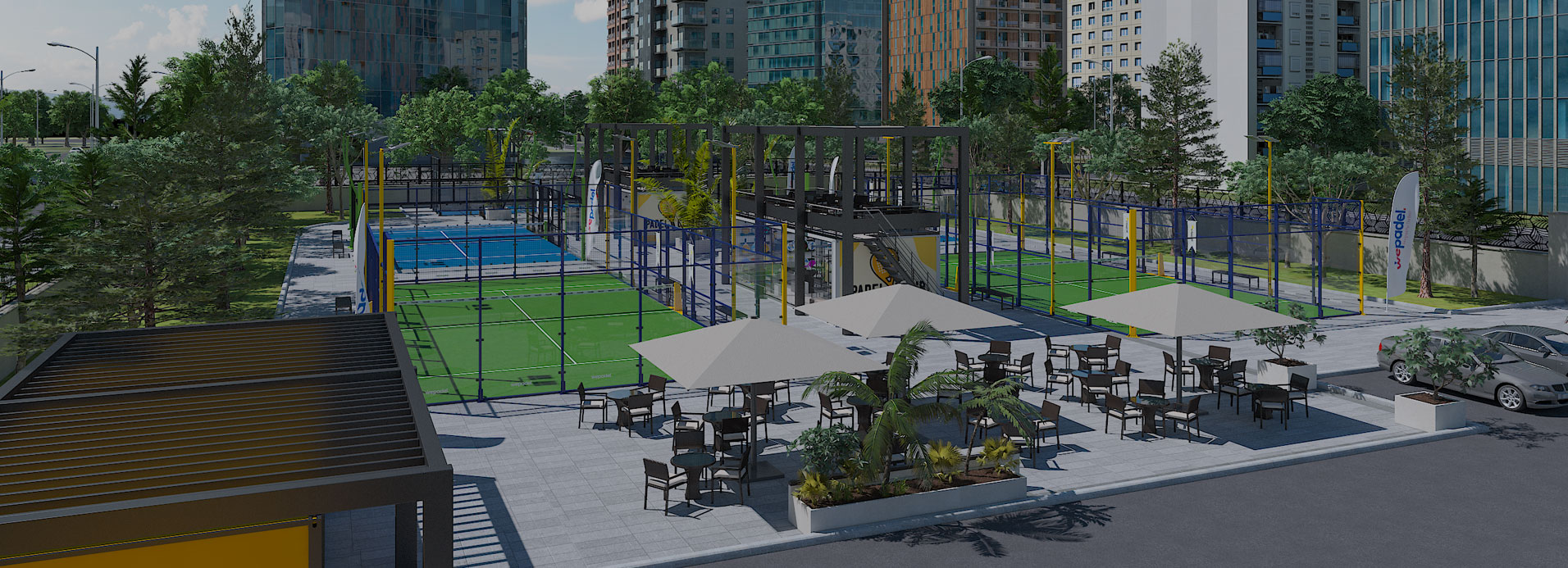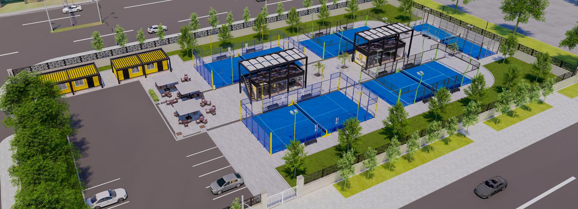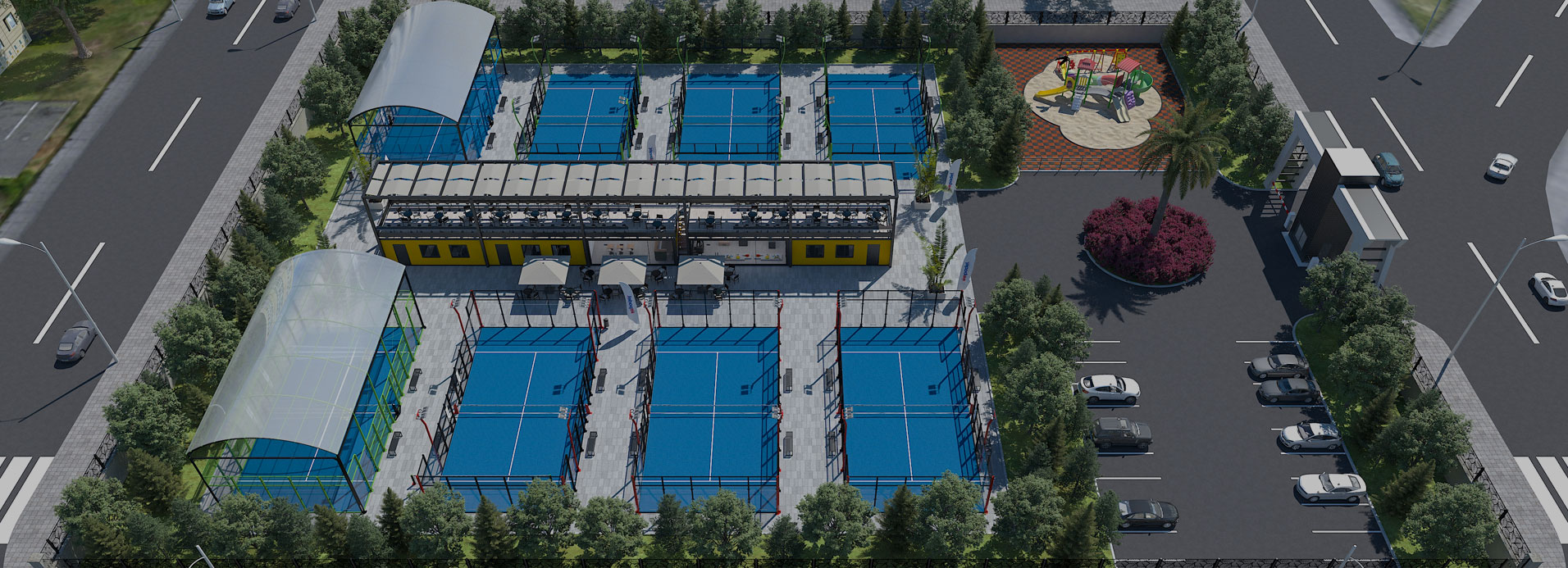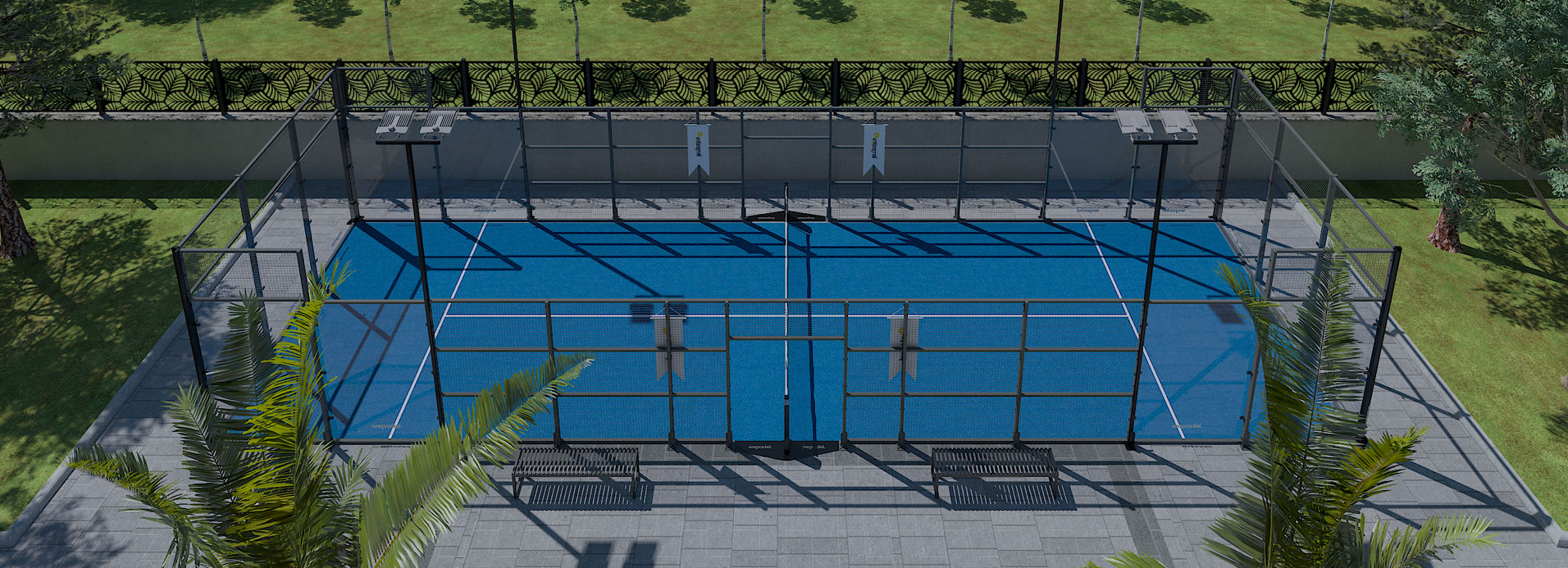 تم تصميم مناطق المناظر الطبيعية في أندية البادل بشكل احترافي من قبل مهندسين معماريين ومهندسين ذوي خبرة بما يتوافق مع الظروف البيئية .