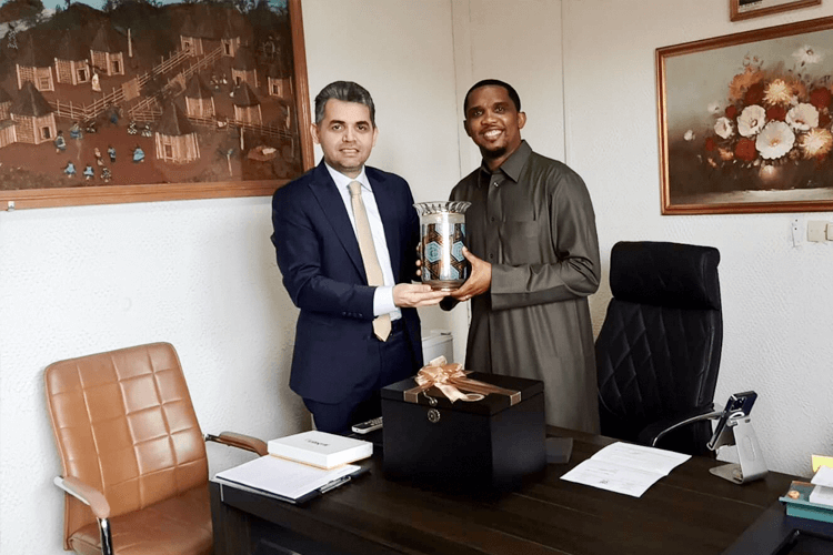 لقد عقدنا اجتماعًا دافئًا ووديًا مع السيد صامويل إيتو، أحد نجوم كرة القدم العالمية. قدمنا الهدايا لبعضنا البعض. تحدثنا عن مشاريع تتعلق بمستقبل كرة القدم الأفريقية. سيكون لدينا أخبار جيدة قريبا.