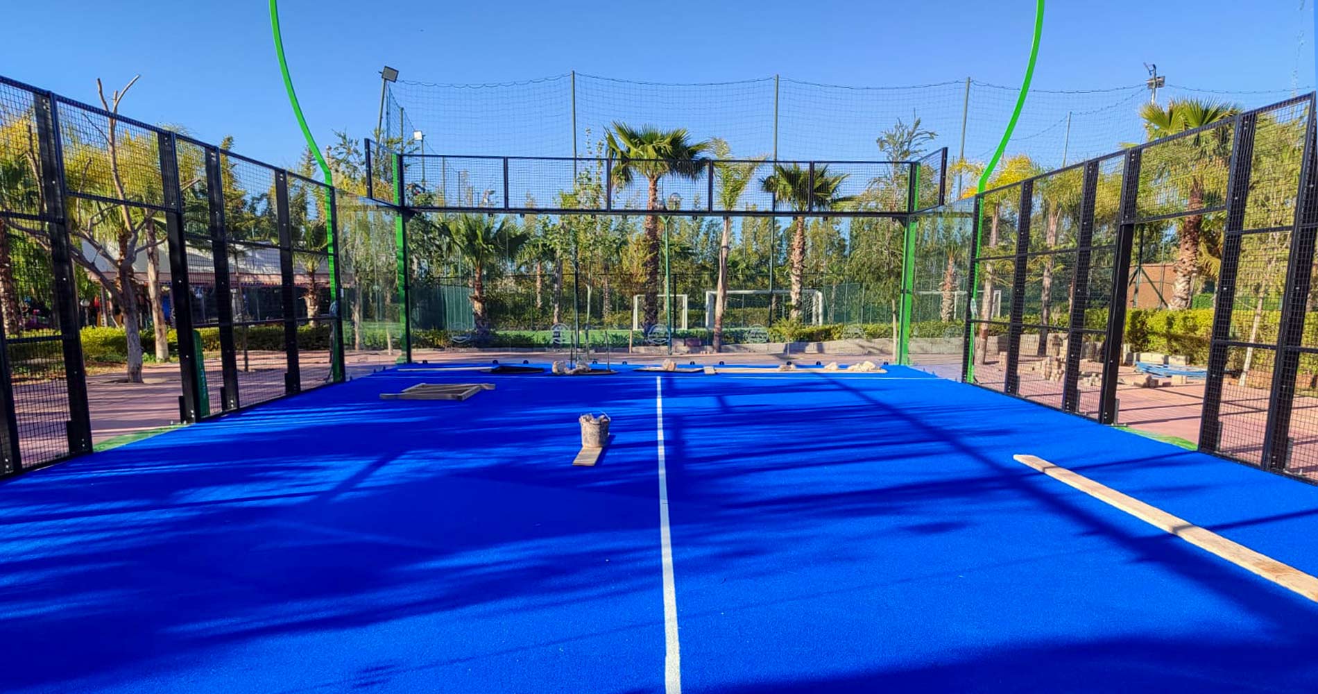 قامت شركة WePadel بتصميم ملعبي تبديل بانوراميين وفقًا لمعايير FIP الخاصة بالمغرب.