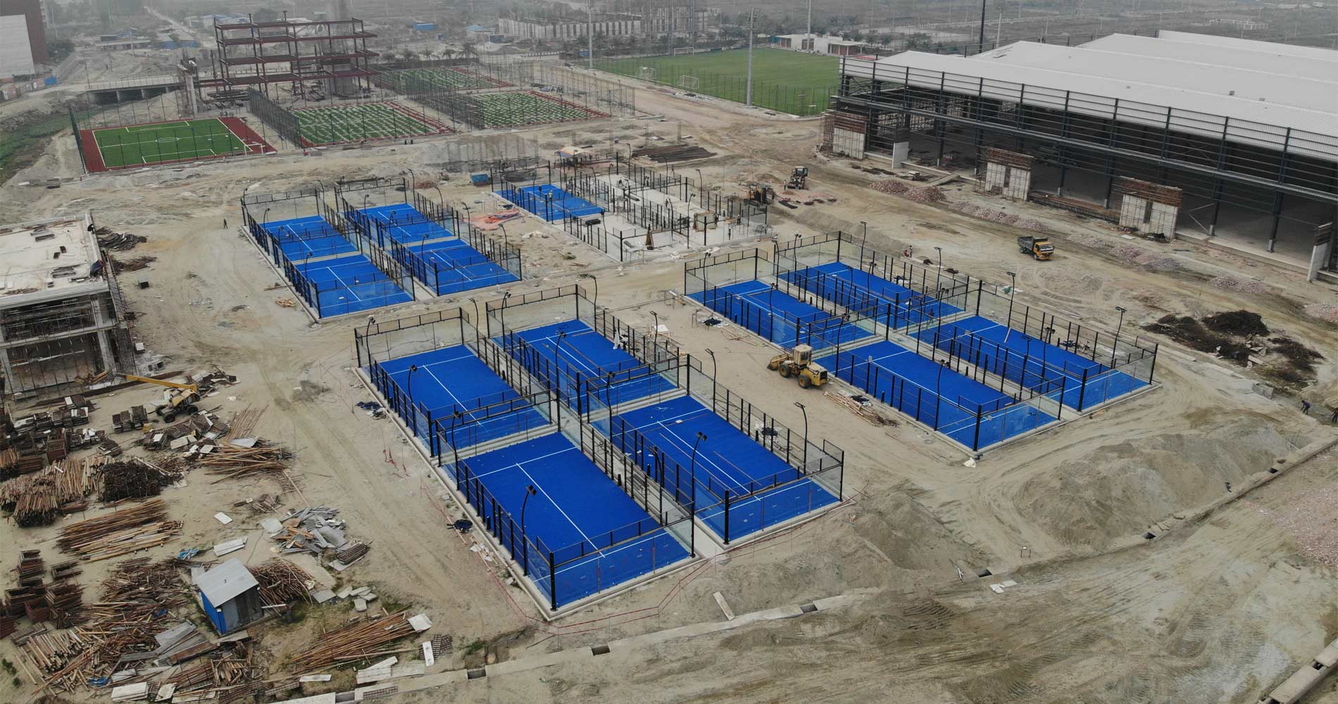 يتوافق العشب الاصطناعي والزجاج والإنشاءات الفولاذية وغيرها من المنتجات في جميع نماذج ملاعب البادل مع معايير الاتحاد الدولي للبادل